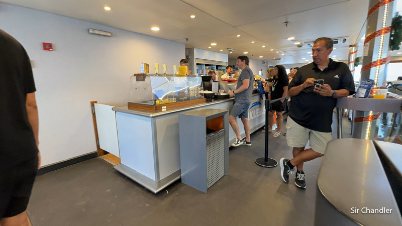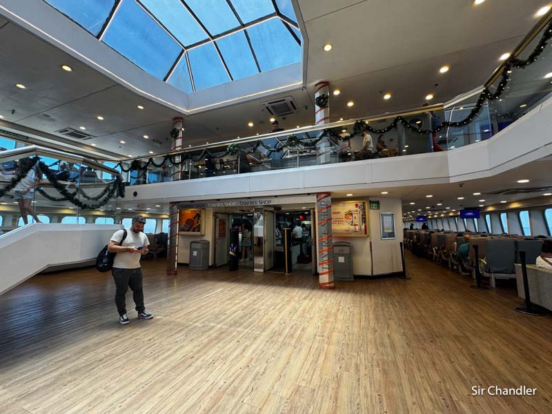 El punto central del barco. en el nivel en el que estoy está el free shop y arriba está el bar donde se puede comprar algo