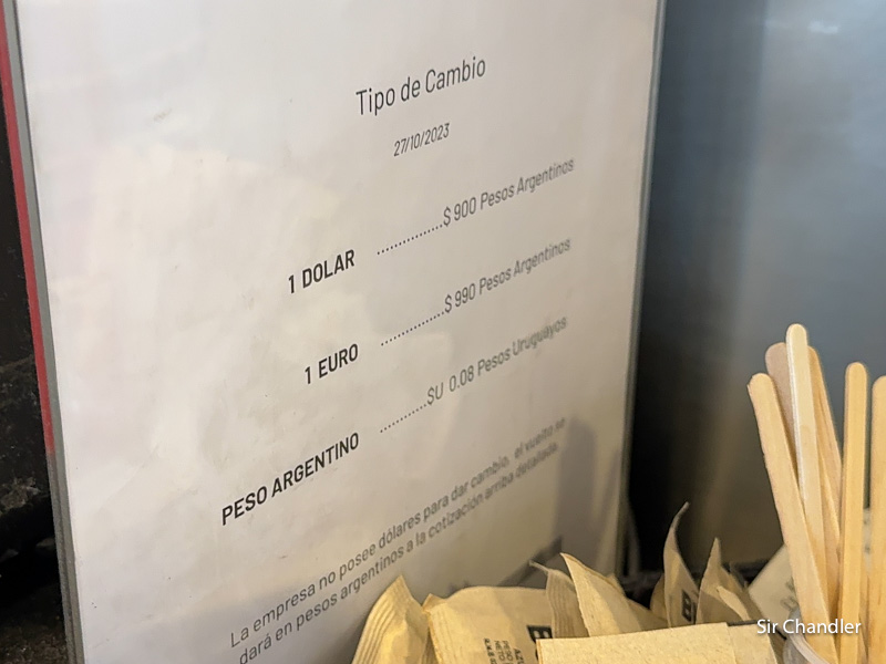 Esto lo mencioné en un post hace unos días, también ahí en el free shop del barco, que opera como si estuviera en Uruguay, no toman dólares cara chica.