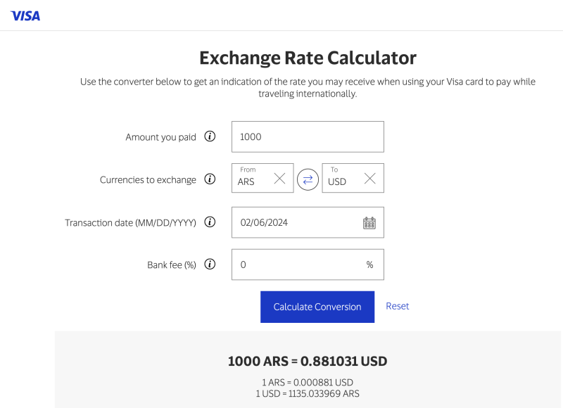 Esto se puede ver en el sitio especial de VISA que sirve para conocer las conversiones en todo el mundo https://usa.visa.com/support/consumer/travel-support/exchange-rate-calculator.html y que anoche decía que el dólar era igual a 1.135 pesos. Hay un sitio similar de Mastercard pero no lo recuerdo, si algún lector lo suma en los comentarios lo agradeceré. Gracias Juliana!