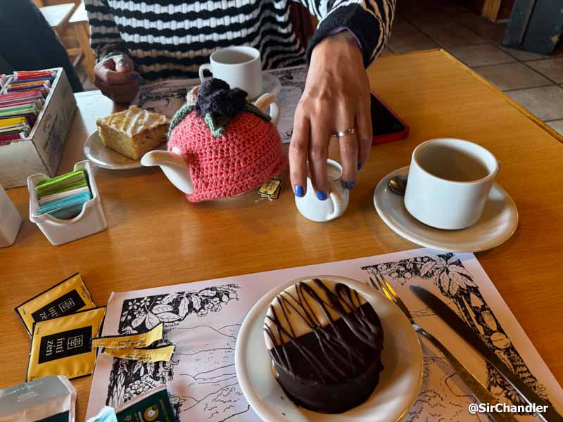 Ahi tienen una casa de té y entiendo que restaurante también. Había muchos extranjeros. Linda repostería y precios acordes a la isla. Pude pagar con tarjeta