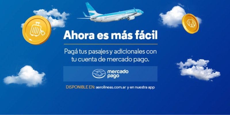 Ayer desde Aerolíneas Argentinas mandaron mail a sus clientes informando que ahora se podrán pagar los pasajes con dinero en cuenta de Mercado Pago.