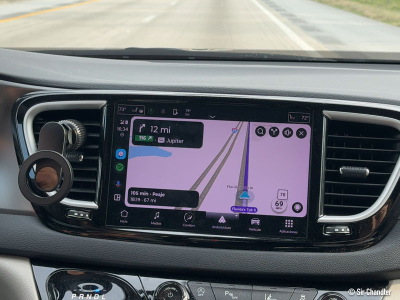 Obvio Apple Car Play o Android Auto andan perfecto. Y algunos me consultaron por el soporte que ahí se ve donde yo pegaba el iphone… una MASAAAAA. Es con MAGSAFE, el aro magnético de Apple, lo compré en Amazon pero ahí hay varios. Y era útil para búsquedas de lugares más fácil que en la pantalla por ejemplo, pero porque como cuento hace años yo uso los dos teléfonos con los dos sistemas operativos. Ahí el android auto está con mi Motorola