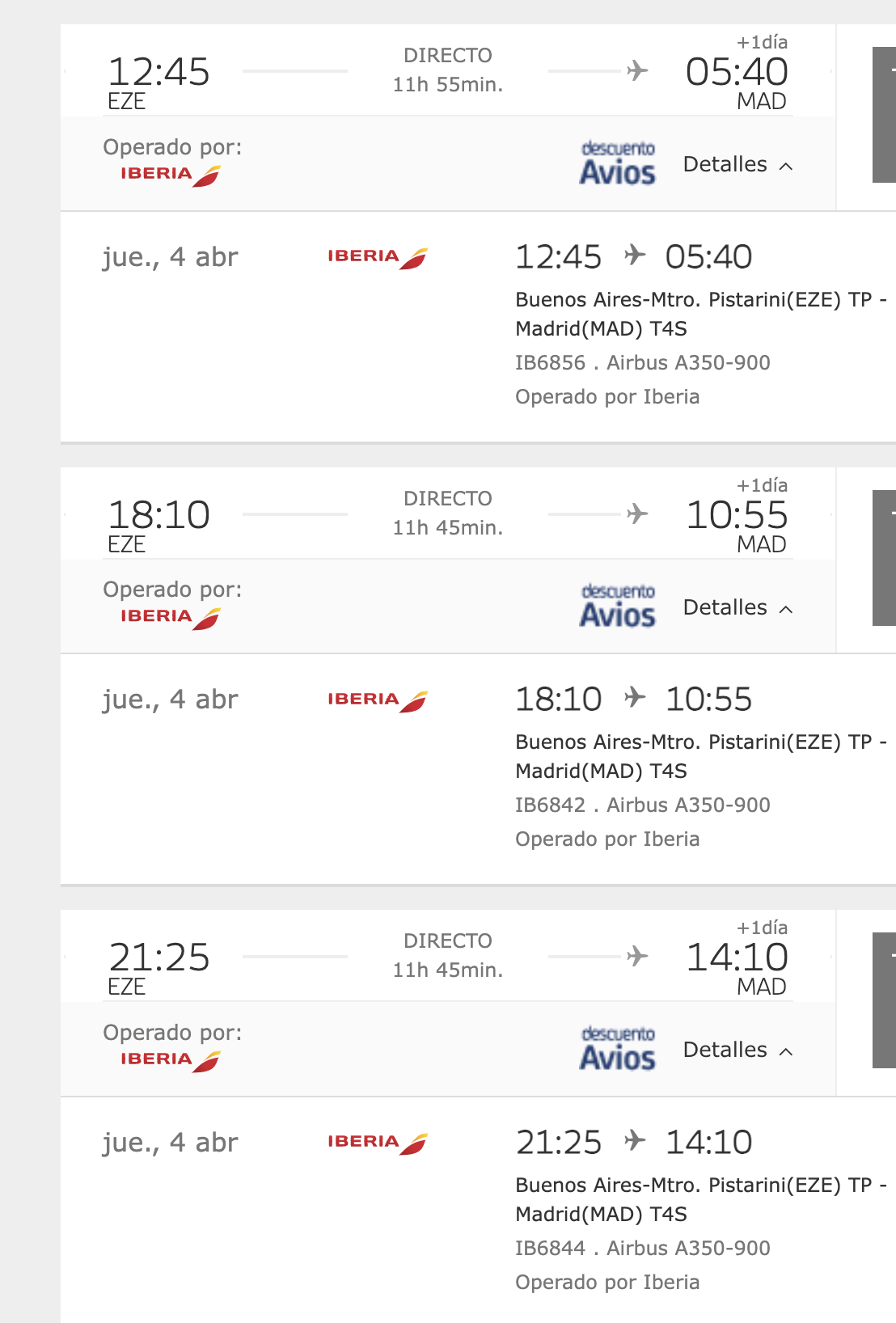 Si ampliamos en detalles se ve que todos siguen siendo con el Airbus 350-900