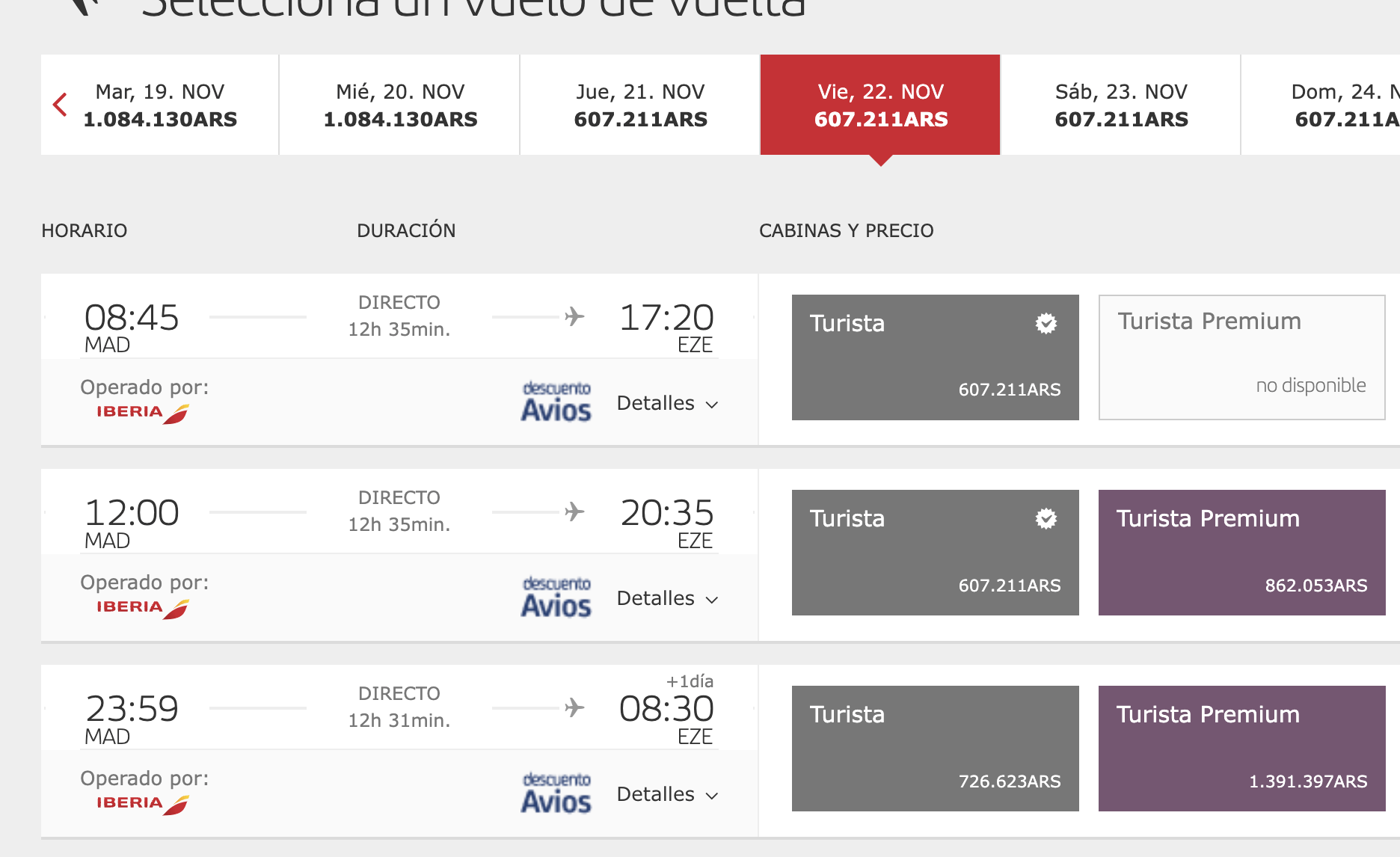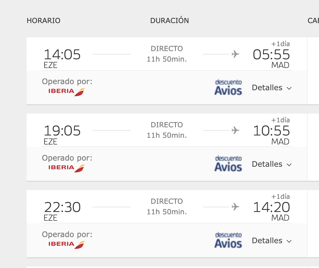Aplicando el 50% de descuento queda BUE-MAD ida y vuelta en 25.500 Avios….vos pudiste emitir Buenos Aires Madrid ida y vuelta por esa cantidad?