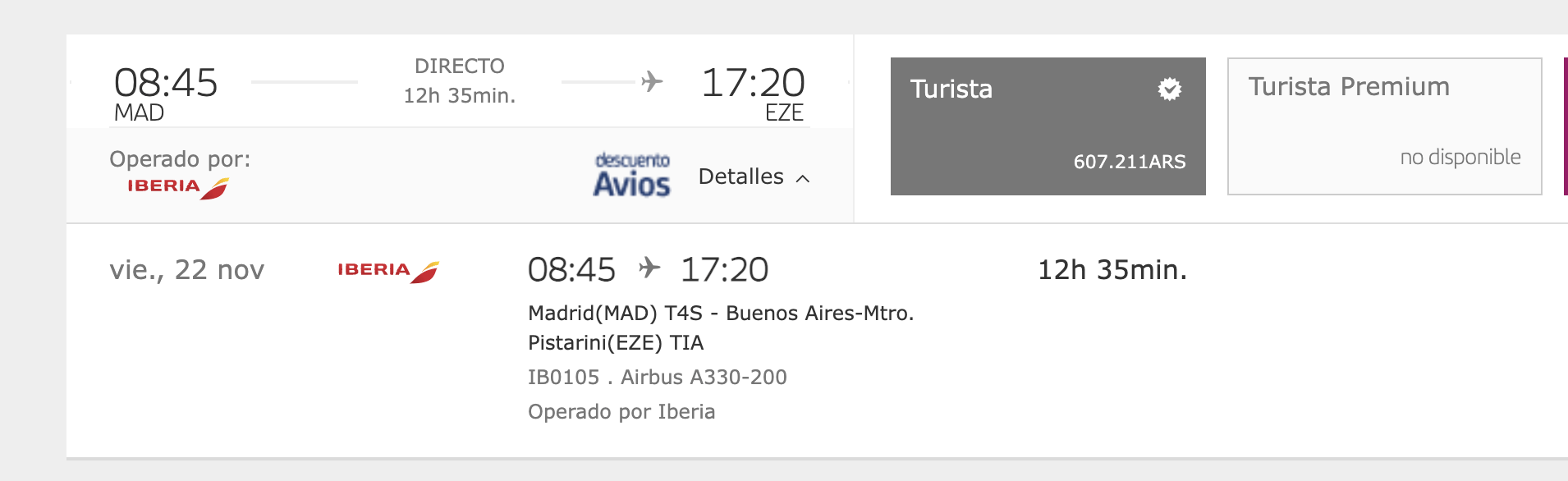 Tengo que sacar 2 pasajes ida y vuelta por Iberia en turista premium