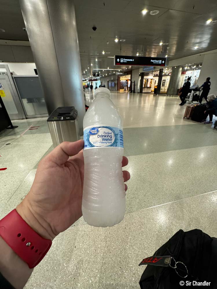 Como uno llega 3 horas antes, y se sube a un vuelo que lleva horas… bueno, el agua deja de estar congelada y pasa a ser útil 😉