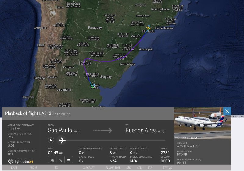 La imagen de portada es el recorrido que hizo anoche el vuelo que tomé en Guarulhos (San Pablo) hasta Ezeiza, como continuación del que nos trajo de Roma.