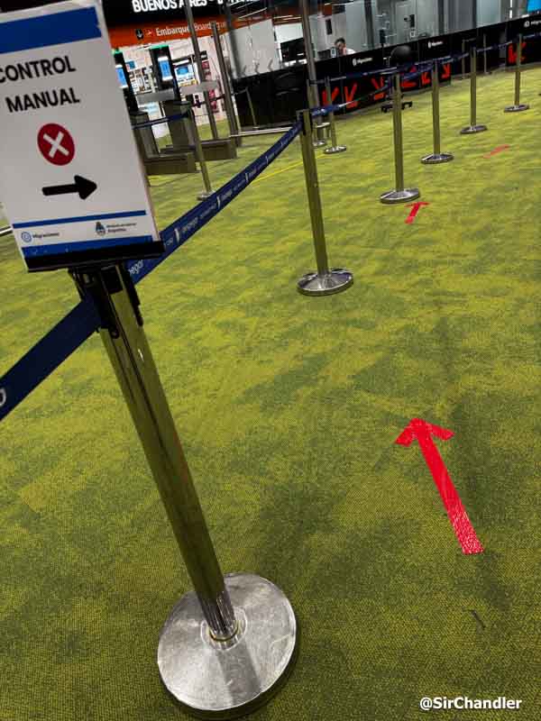 Los EGATES están a la izquierda de esta foto. Yo en cambio tuve que seguir el camino señalizado con un sistema 3D incrustado en la alfombra que me indicaba cada dos metros, como para dejar en claro que uno es un incapaz por haber hecho mal el trámite y temen que ahora se vaya por otro lado de la cinta… 😛