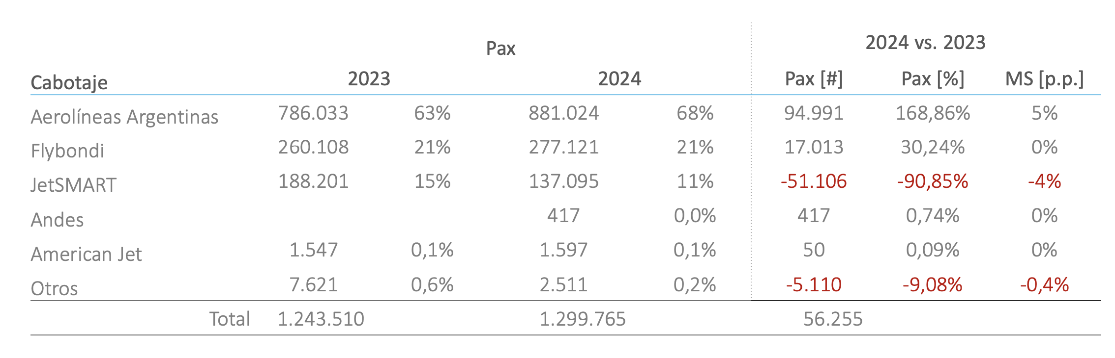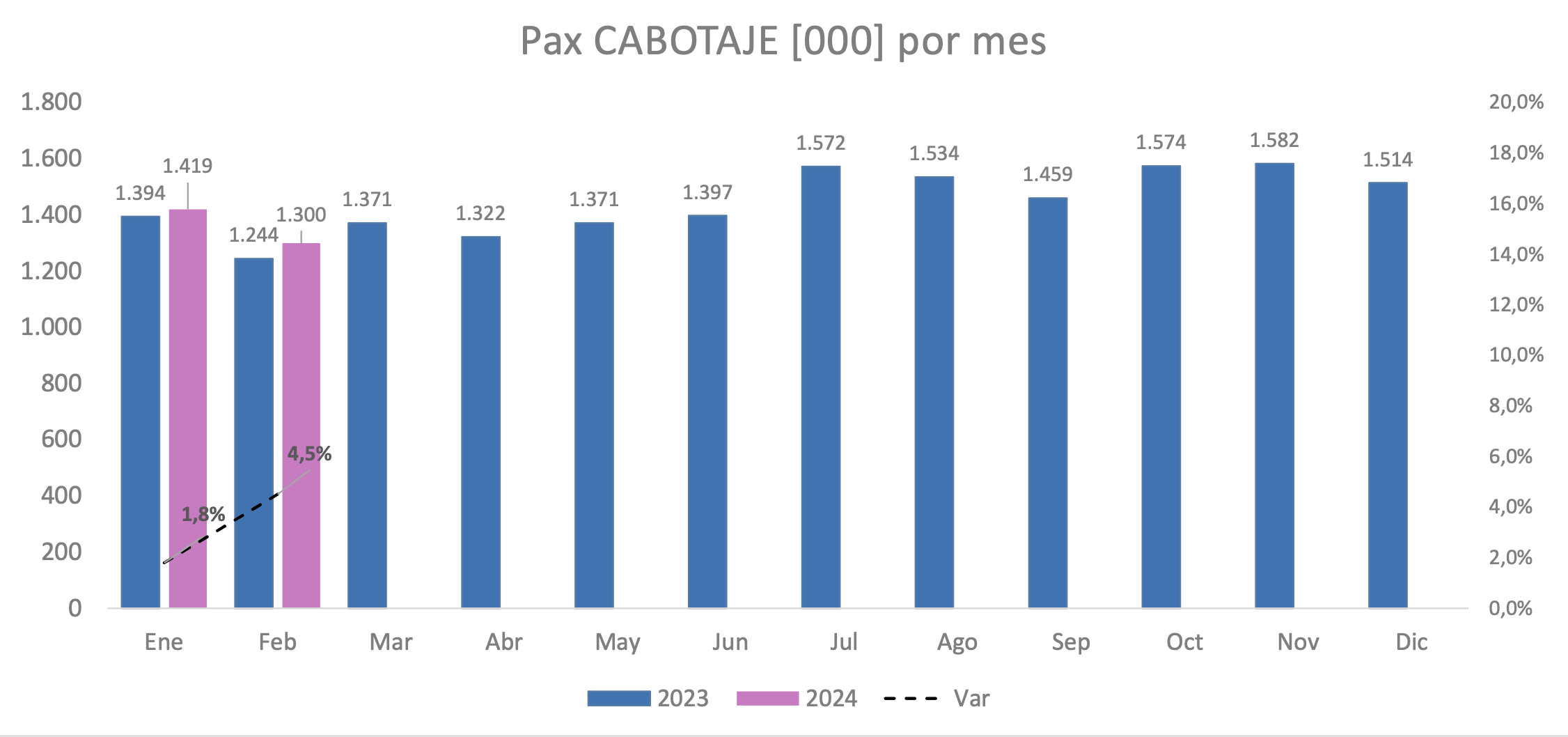 Vemos que febrero tuvo menos pasajeros que enero, pero es algo normal, pero que en relación al año pasado la mejora en cabotaje fue del 4,5%