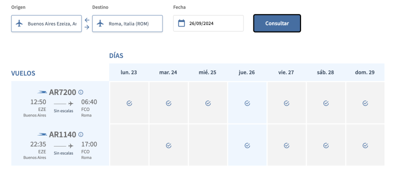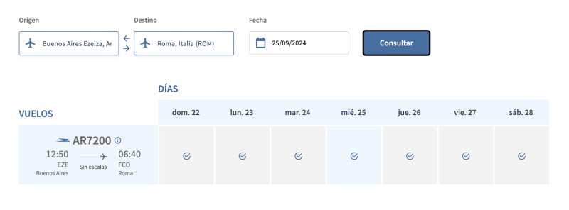 Dejo los ejemplos, si pongo 25 de septiembre Aerolíneas no vuela a Roma… pero si ITA con código compartido