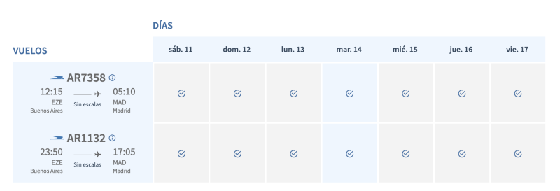 Pero acá si vemos que es doble todos los días porque en mayo es uno solo (más el de Air Europa)