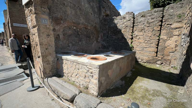 Hola Sir, cuando estuvimos en Pompeya hace ya 12 años , lo recorrimos con audioguía. Además de los lugares que habitualmente se visitan , de los cuales no dejamos de pasar por el Lupanar, me llamó la atención los baños públicos con los asientos, llamemosle inodoros, uno al lado del otro eran 6 o 7 en total, y la explicación decía que los romanos acostumbraban a conversar con el de al lado mientras hacían sus necesidades.
