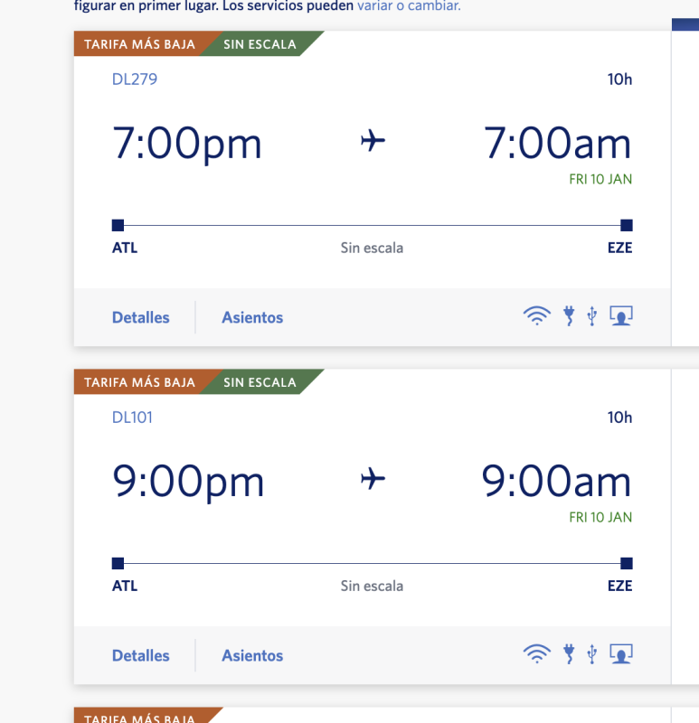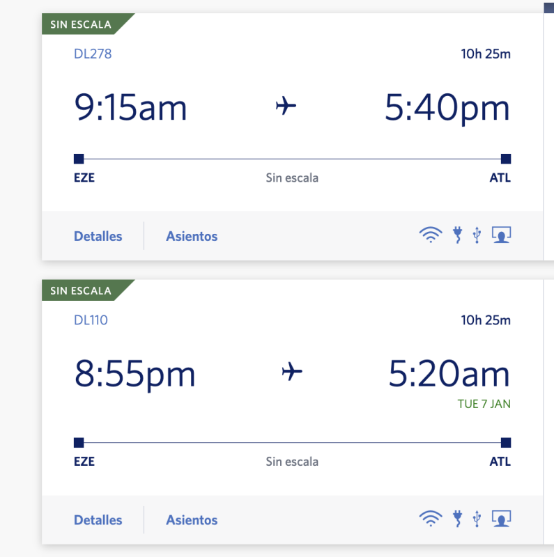Delta tendrá entre diciembre y enero, dos vuelos por día entre Atlanta y Ezeiza, según lo que se puede ver en su sitio web.