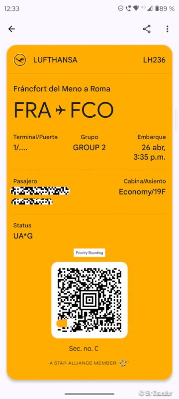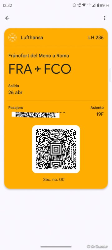 Y se termina viendo así, con el QR necesario para embarcar. Además del nombre y asiento