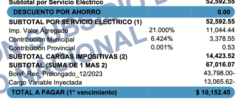 Igualmente, gracias a Edesur, uno puede recuperar más en lugares como San Vicente, por los reclamos ante el ENRE, donde por ley, si hay más de 4 cortes por mes… uno tiene derecho a una compensación. Es algo que se denuncia, con las pruebas de los reclamos y luego aplican ese valor en la factura.
