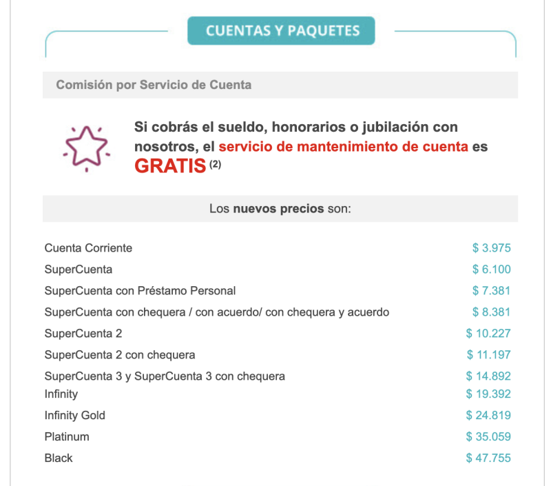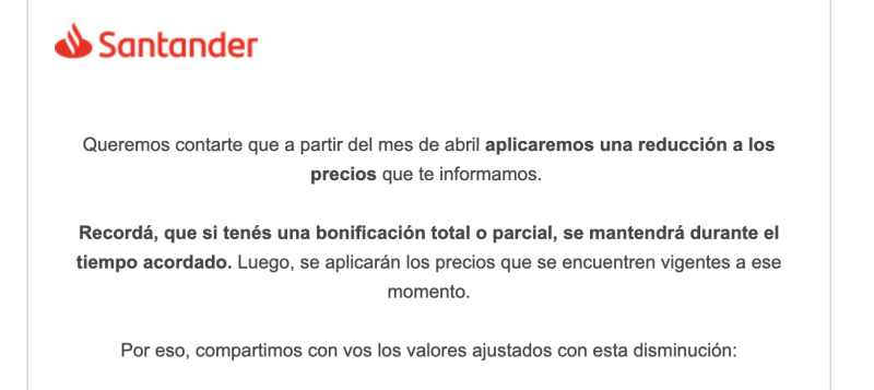 Anoche llegó mail del SANTANDER con los valores de los paquetes y no le di bola… supuse que era un recordatorio de que aumentaban, como contaron en febrero pasado, para este mes de mayo.