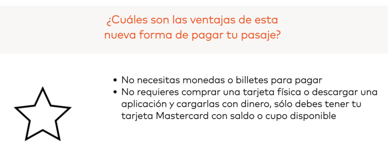 Y para que quede claro sobre pagar directo con tarjetas… es sin hacer más nada que acercarlo, como lo dice esto de Master en su web sobre el tema en Chile https://www.mastercard.cl/es-cl/consumidores/formas-de-pago/sin-contacto/transporte.html