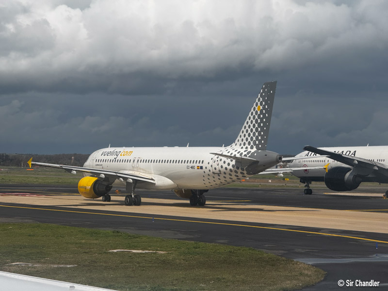 Un Vueling adelante de un Air Canada