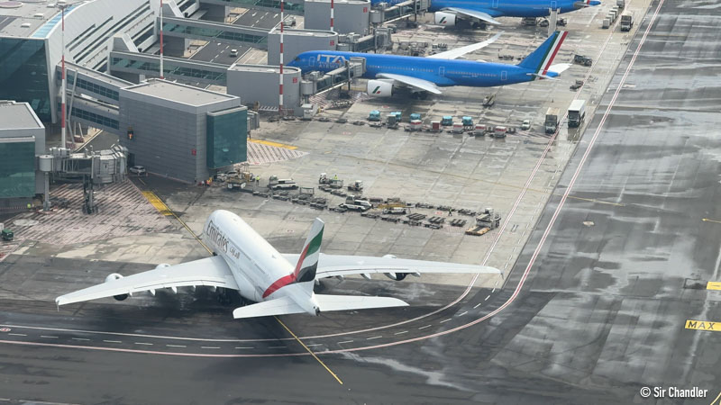 Y mientras despegábamos entraba un A380 de Emirates junto a un A350 de ITA