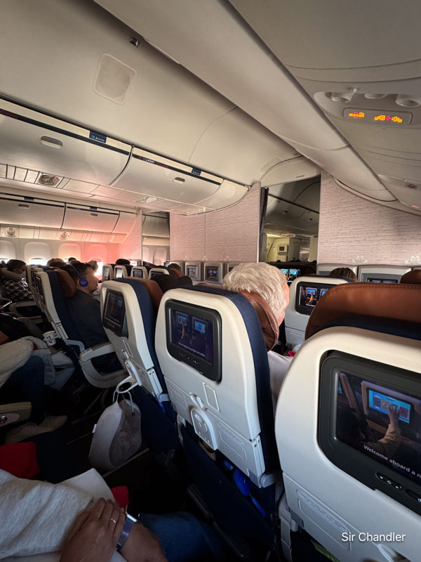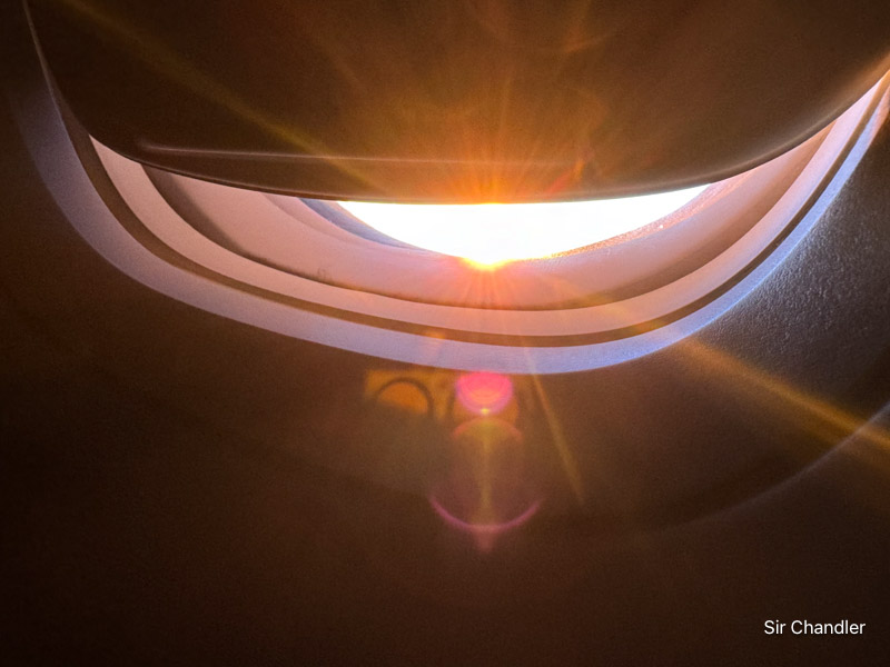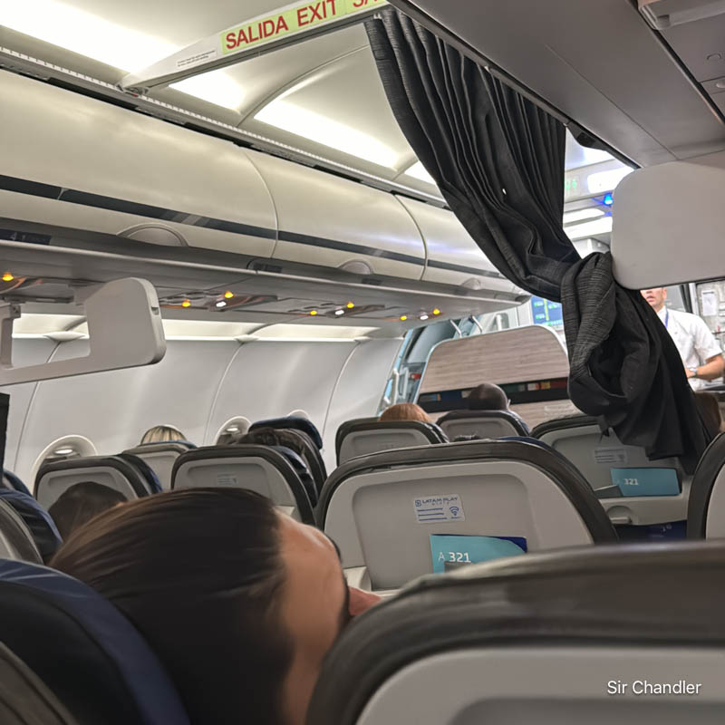 Todo el mundo baja las cortinas y parece de noche… pero no. El vuelo diurno es bastante trastornador por esto también, pero es lógico que conviene descansar