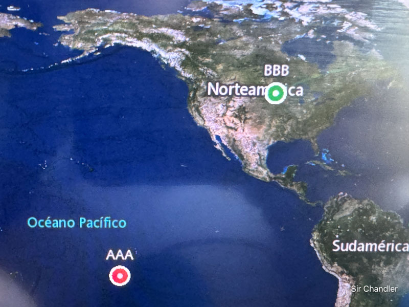 El mapa del avión tenía un error gracioso, seguro algún reseteo o algo así terminó con un origen desde BBB al destino AAA, que era un aeropuerto pequeño en USA hasta una isla francesa en el Pacífico. Pero así no podía saber cuanto faltaba 😉