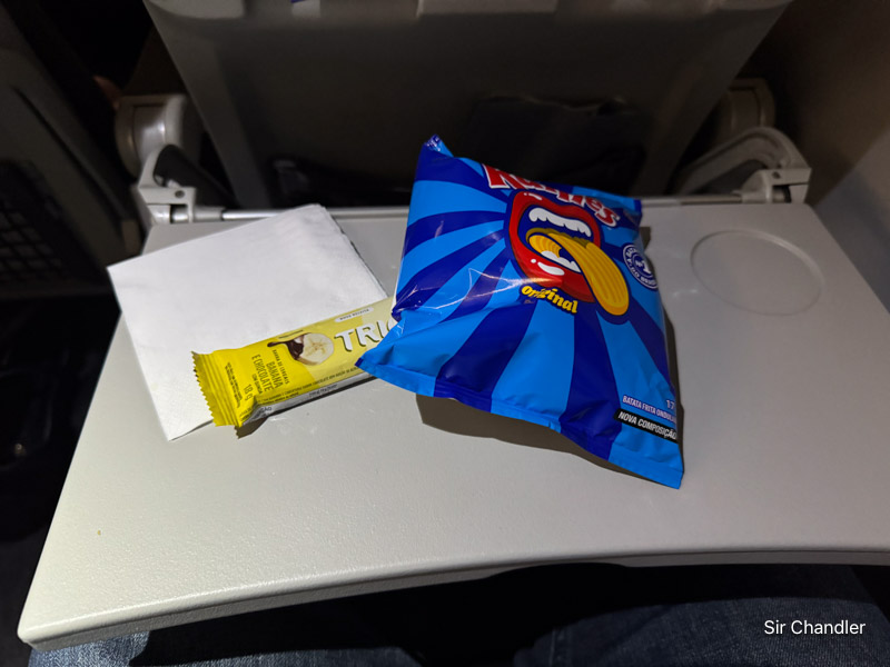 En algún momento, posiblemente a la mitad del vuelo pasaron con una barrita y papas fritas