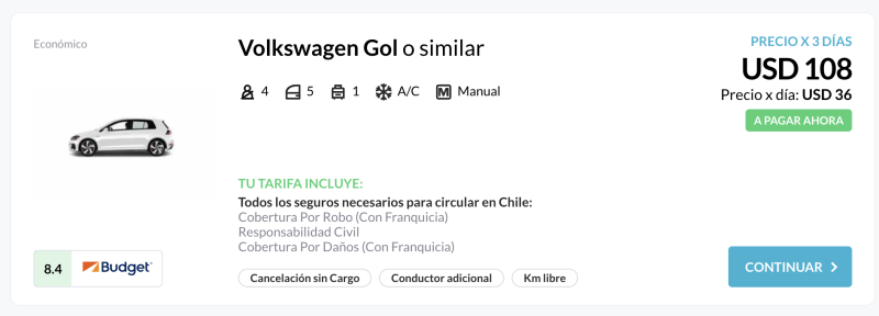 El seguro que te da Bookingcars para Chile tiene franquicia?