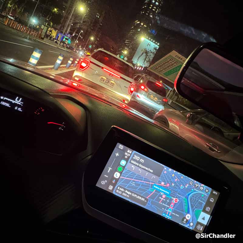 Cuando me di cuenta y solucioné eso, el tiempo por waze pasó a ser lógico y dejó de pedirme que me baje de la autopista.El WAZE es fundamental para el tránsito de Santiago que es caótico… no al punto de San Pablo, pero en determinados horarios es caótico. No en los que yo pensaba usarlo