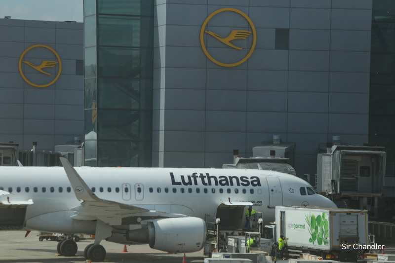 Frankfurt es un aeropuerto enorme y con mucho movimiento. Está lleno obviamente de aviones de Lufthansa donde se puede ver aun que no se implementó totalmente el nuevo diseño, siendo el de azul oscuro el último