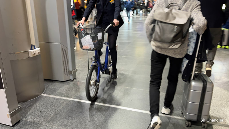 Una vez tenia 5 horas de conexión a ultima hora. Poca gente en el aeropuerto, mucho espacio libre. Vi las bicis y pregunte si podía usarlas. Me sacaron carpiendo… era muy tentadora la idea de andar en bici por una terminal sin gente…