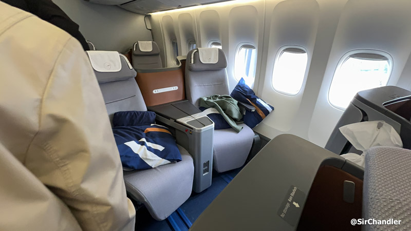Si entrara a la izquierda, estaría en primera, pero a la derecha está la business. Una curiosidad, los 8 asientos de primera estaban llenos… y es habitual que así lo estén me contaron los chicos de embarque. Pasajes que cuestan el doble que los de business.