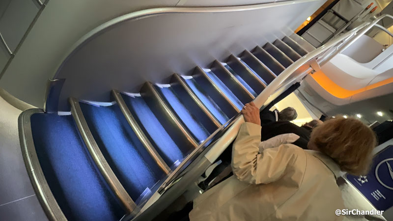 Siempre quise viajar en el piso de arriba, aunque supongo no cambia mucho estar 2 metros más alto a 10.000 de altura, jaja. Fui a Frankfurt 2 veces en los 747 pero en economy. También es curioso en First estar en la «trompa» del avión. Proximo viaje que sea en business a Europa podría cumplir el sueño antes de que desaparezcan, no sé si vale la pena elegir la aerolinea por eso.