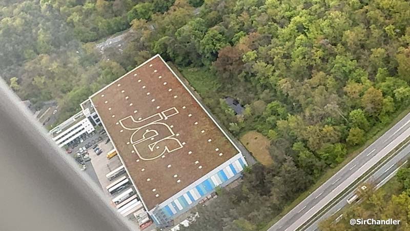 Varias fábricas o depósitos en la final del aeropuerto tenían techos verdes y escrito el nombre de la empresa