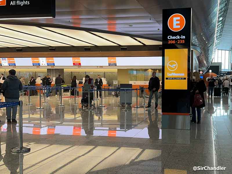 Recordemos que todas las aerolíneas operan en la nueva terminal de partidas. Los carteles de afuera pueden orientar por donde parar para estar más cerca de los mostradores correspondientes. Lufthansa está más cerca de la vieja terminal A