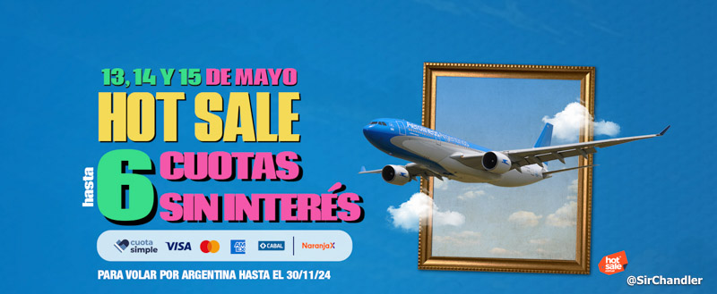 Dentro del oficial está Aerolíneas Argentinas que tiene cuotas sin interés para vuelos nacionales hasta el 30 de noviembre, algo que suelen usar con estas promos.