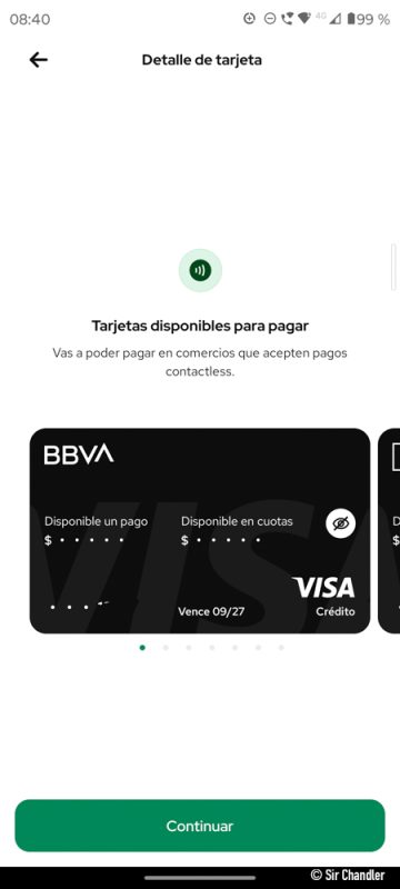 Y muestra las tarjetas que se pueden activar así, que son las que los bancos informaron que ya estaban, en mi caso BBVA, Galicia y Santander. Tengo en MODO una débito del Banco Nación y aun no aparece porque el Nación no lo reportó