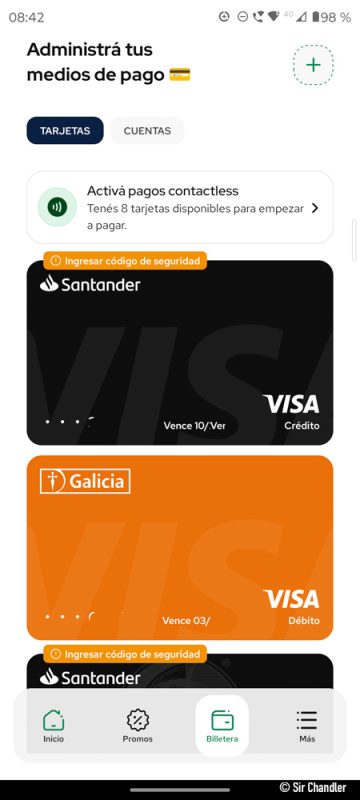 Modo: Lo usé y todo bien, aplican las promociones de Modo, que son por Código QR, como también, pagando con NFC, como por ejemplo, 50% de reintegro de Gastronomía, pagando con NFC o código, (pero elegí NFC) y me lo aplicó al instante.