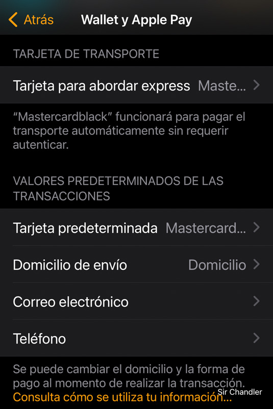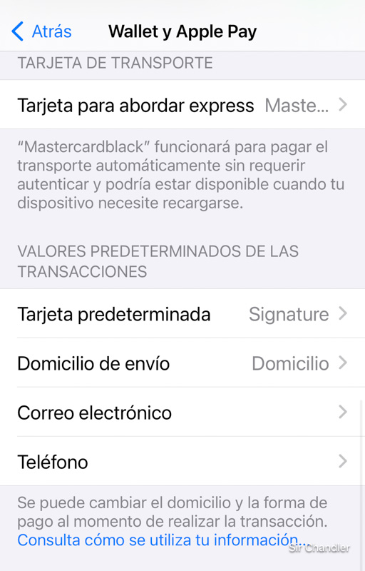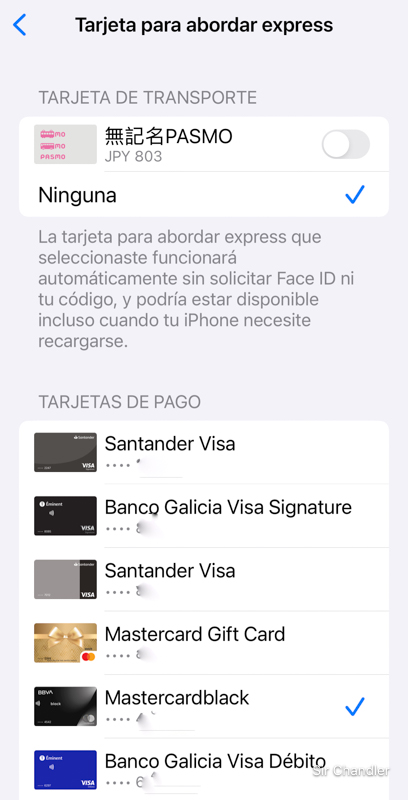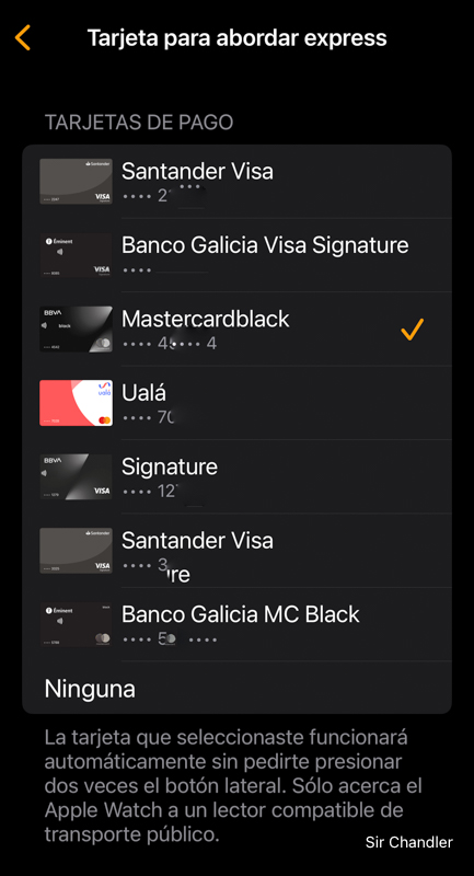 Y en el caso de los que tengan iphone y además el reloj e Apple, pueden poner distintas tarjetas predeterminadas para los gastos como para el pase de abordar express.