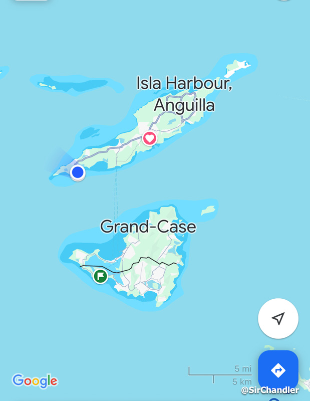 Y es tan enfrente… que se ve una desde la otra, pero no del lado del aeropuerto famoso. Es para destacar que muchos pasajeros llegan a Anguila por las conexiones aéreas de sus vecinos (St Maarten) y luego un un ferry pequeño cruzan hasta Anguila desde ahí.