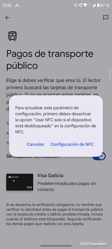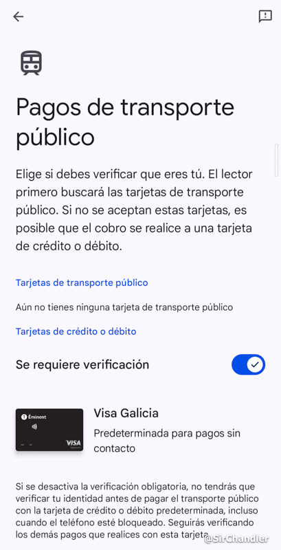 Me parece a mi o es mas complicado Android que Apple para seleccionar tarjeta de pago para el transporte sin verificación?
