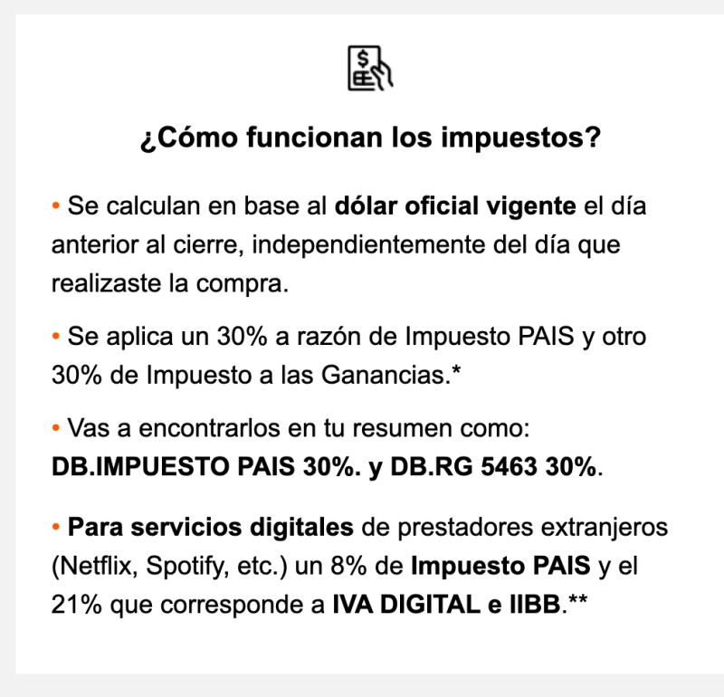 ¿Cuál es la forma correcta? (por como trabaja el sistema) Es esperar al resumen, ver los dólares y los impuestos en pesos, pagar con dólares, ignorar los impuestos… y pagar los pesos restantes, si es que aplica.