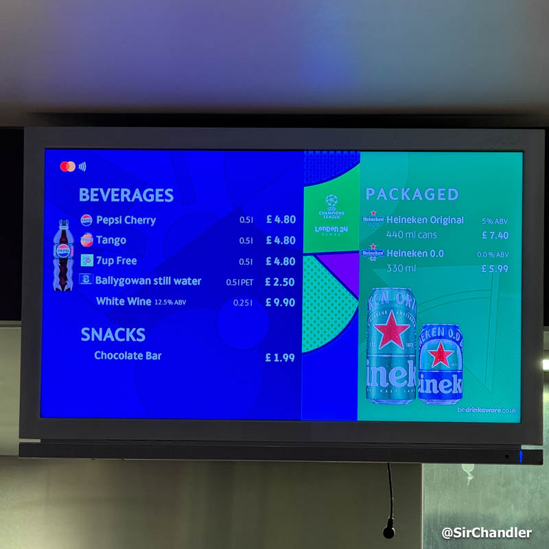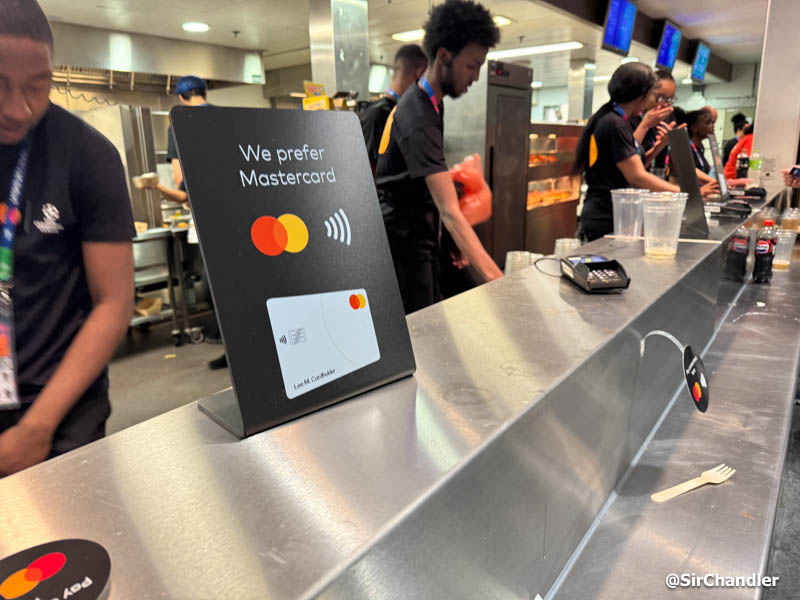 Todo el mundo pagando con tarjeta y lógicamente lo promocionado era el contactless de Mastercard que es patrocinador de la Champions. Y real… todos pagando con el celular