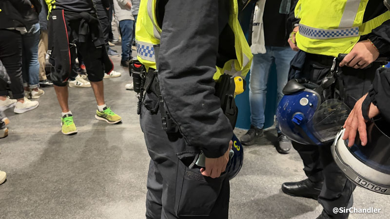 En el entretiempo muchos fueron para baños y lectores. Ahí si había bastante policía y tenían las taser (hombres y mujeres)