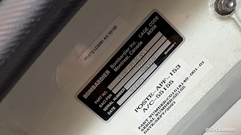 Cuando embarqué pude tomar la foto que todos los aviones tienen, con los datos del avión. Fabricado en Montreal, Canadá