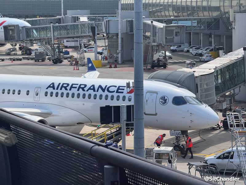 Me fui a un salón vip por la categoría de Skyteam y de ahí se veía el vuelo anterior de Air France, en el mismo avión