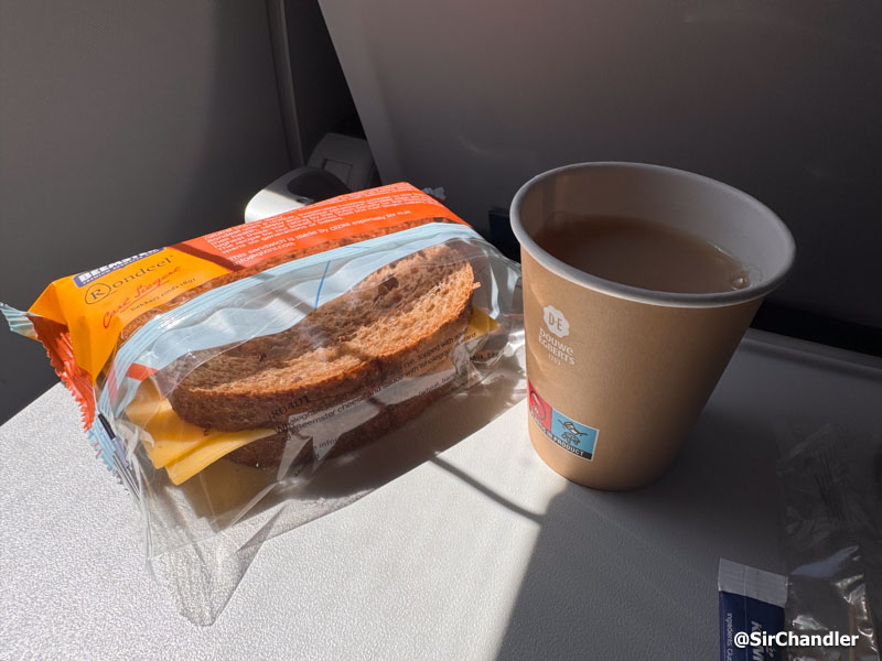 El vuelo dura menos de dos horas, pero dan un servicio con un sandwich de queso y una bebida