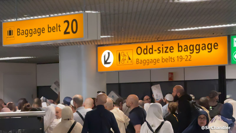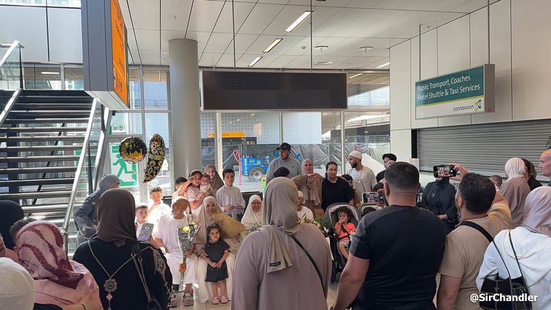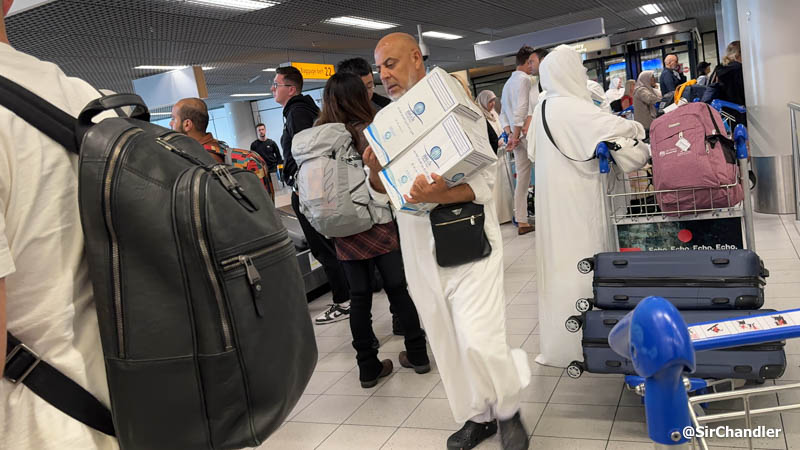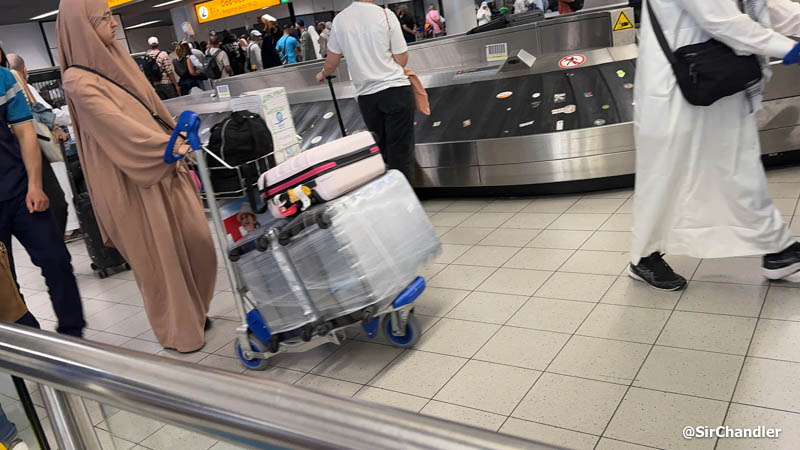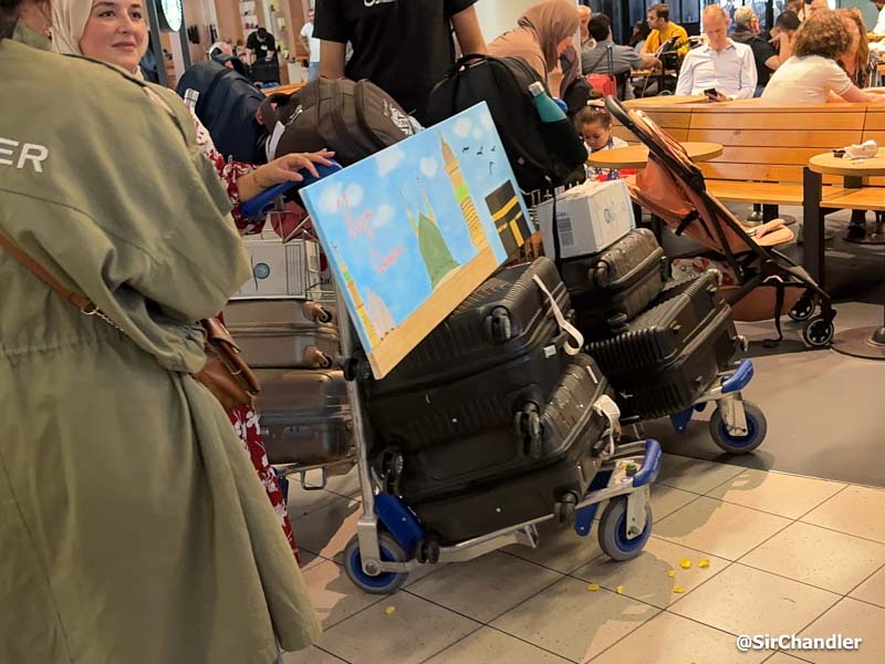 Y lo particular del arribo fue que el aeropuerto estaba lleno de pasajeros que venían de LA MECA. Pero lleno…