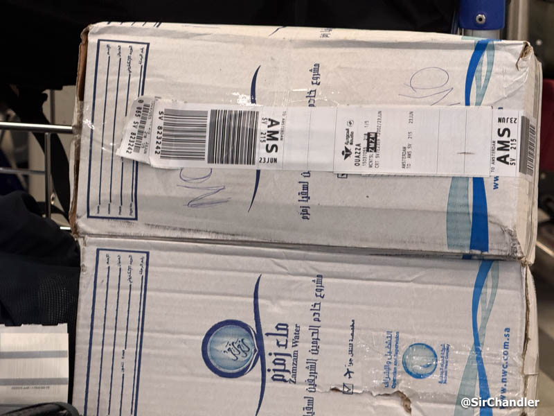 Las cajas sobredimensionadas son agua de Zamzam, lo indica en el envoltorio. Es un agua que lus musulmanes consideran sagrada. Acá lo explica: