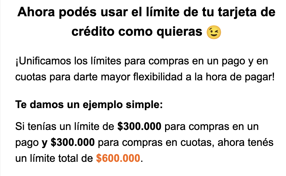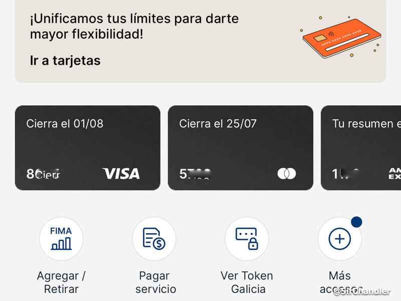 Hace unos días recibí un mail informando la unificación de límites de las tarjetas del Galicia. Históricamente tenía un limite de UN PAGO y otro de cuotas. Lo cual siempre fue bueno porque te daba más margen.