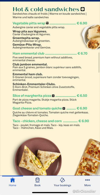 Con la app de Eurostar podés ver los precios de lo que se vende en el coche comedor
